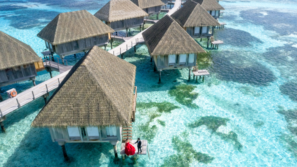 Se c’è un’immagine che rappresenta le Maldive, è quella delle sue acque trasparenti, capaci di riflettere mille sfumature di azzurro. Lungo i pontili che si allungano verso il mare si possono già intravedere pesci tropicali, mentre le lagune protette invitano a nuotare o semplicemente a lasciarsi cullare dall’acqua calma. La purezza del mare maldiviano è ipnotica: ogni tuffo diventa un momento di leggerezza e di armonia con l’ambiente circostante, un’esperienza sensoriale che non smette di sorprendere.